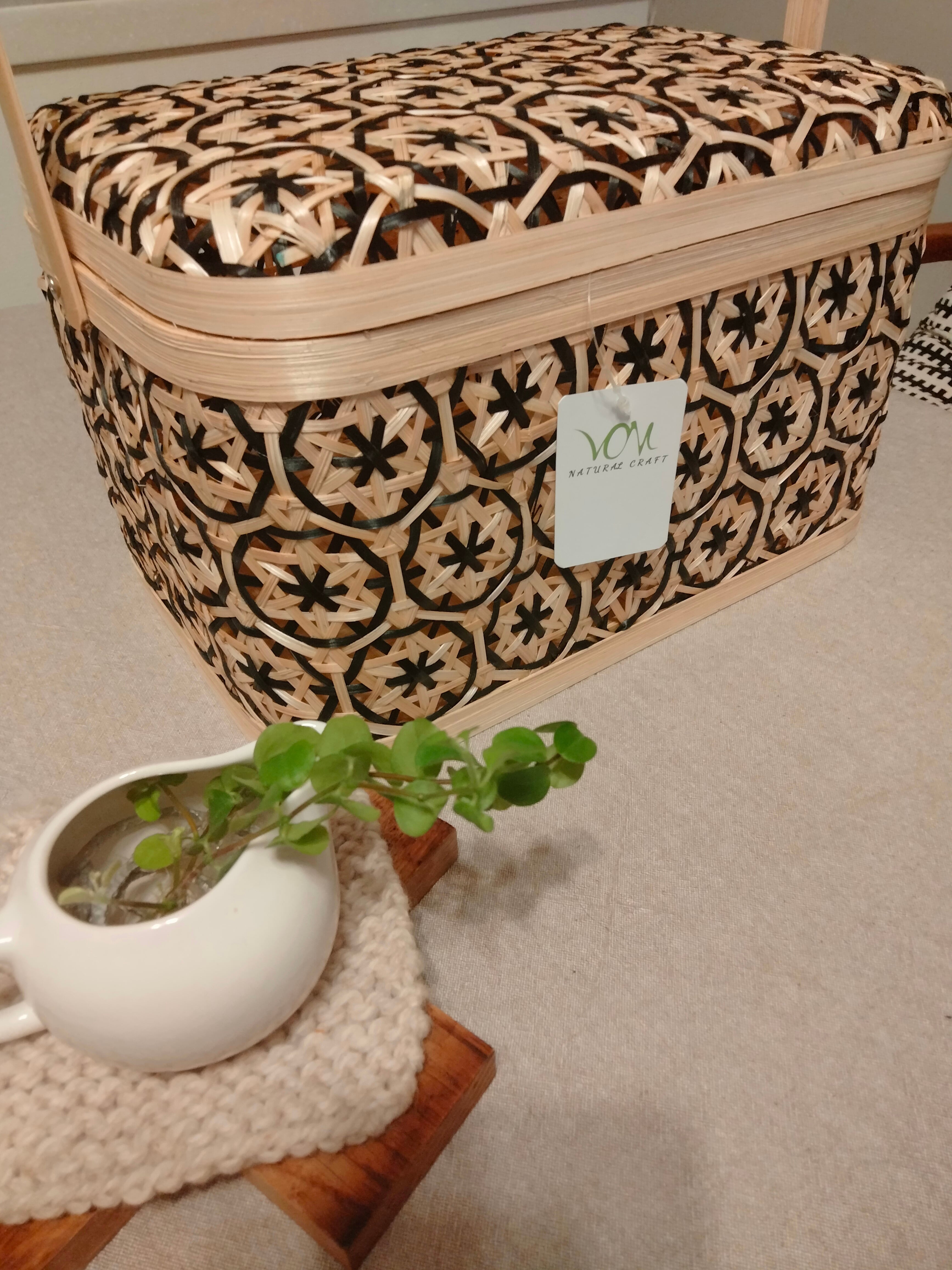 職人が竹材を用いて一つひとつ丁寧に手編みで制作したカゴです。ピクニックにも安心な丈夫な作り。カゴには珍しくモノトーンな印象が、お部屋のインテリアとしても大活躍なアイテム。
